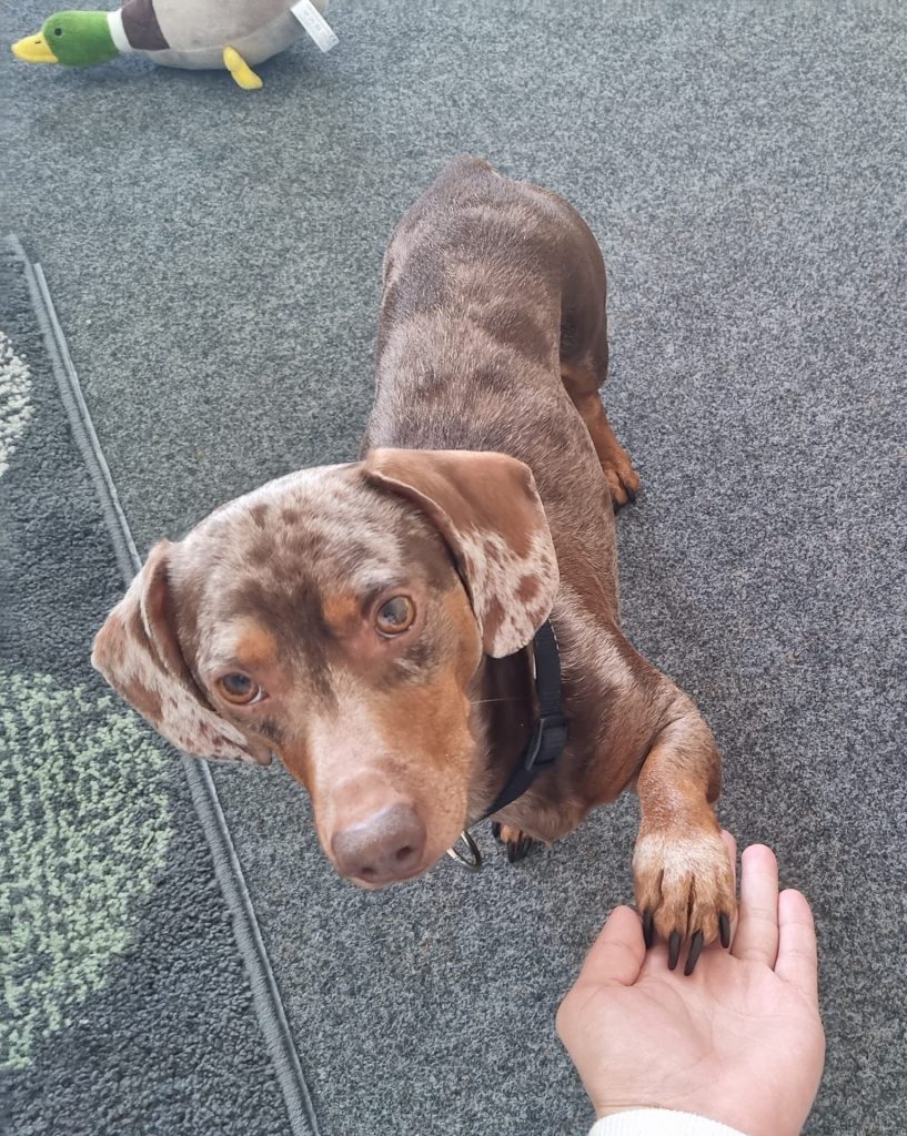 Loki ist ein Dackel im besten Alter (*2015) und eher von der ruhigen Sorte. Besonders ist seine Fellfarbe, die unter die Rubrik Tigerdackel fällt und ihn überall auffallen lässt. Er wurde als Welpe mit der Flasche aufgezogen, da seine Mutter im Straßenverkehr überfahren wurde. Dadurch ist er sehr menschenbezogen und begegnet ihnen stets freundlich und respektvoll.